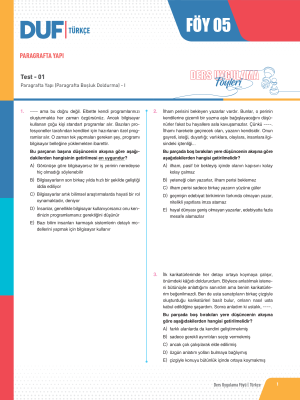 PARAGRAFTA YAPI - Test 1 - Sayfa 1