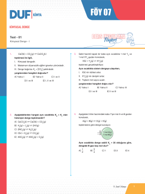 KİMYASAL DENGE - Test 1 - Sayfa 1