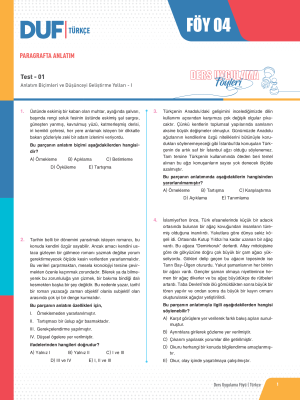 PARAGRAFTA ANLATIM - Test 1 - Sayfa 1