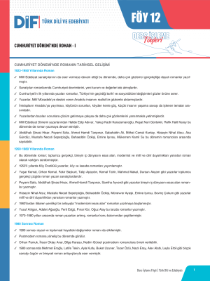 Cumhuriyet Döneminde Roman - I - Örnek Sorular