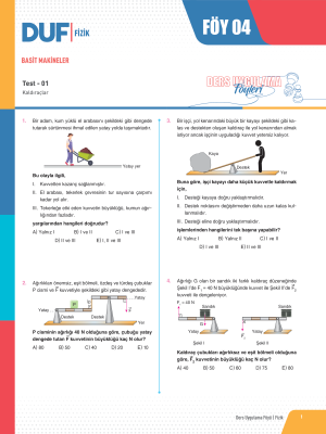 BASİT MAKİNELER - Test 1 - Sayfa 1