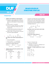 ORGANİK BİLEŞİKLER (FONKSİYONEL GRUPLAR) - DUF - FÖY 10 - Test 1