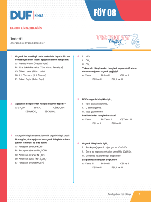 KARBON KİMYASINA GİRİŞ - Test 1 - Sayfa 1
