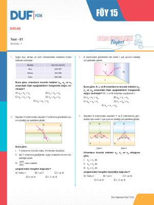 TYT FİZİK DUF - FÖY-15 - 2023 (TYT-AYT( YKS ) - TYT FİZİK) kitabı ile ilgili varsa videolarına, linklerine ulaşabilirsiniz...