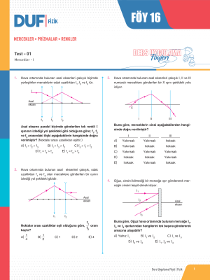 Mercekler - Prizmalar - Renkler - Test 1