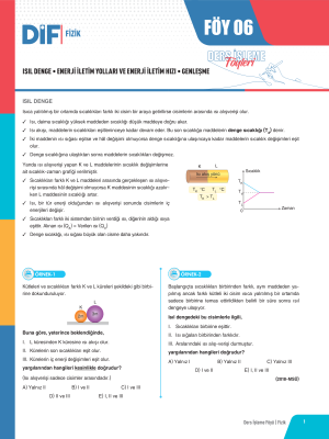 Isıl Denge - Enerji İletim Yolları ve Enerji İletim Hızı - Genleşme - Örnek Sorular