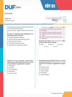 TYT KİMYA DUF - FÖY-1 - 2023 (TYT-AYT( YKS ) - TYT KİMYA) kitabı ile ilgili varsa videolarına, linklerine ulaşabilirsiniz...