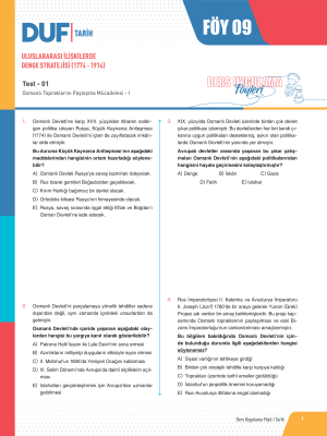 TYT TARİH DUF - FÖY-9 - 2023 (TYT-AYT( YKS ) - TYT TARİH) kitabı ile ilgili varsa videolarına, linklerine ulaşabilirsiniz...