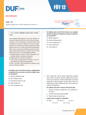 MİLLÎ MÜCADELE - Test 1 - Sayfa 1
