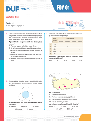TYT COĞRAFYA DUF - FÖY-1 - 2023