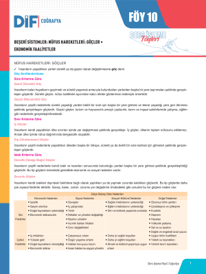 Beşeri Sistemler : Nüfus Hareketleri : Göçler - Ekonomik Faaliyetler - Örnek Sorular