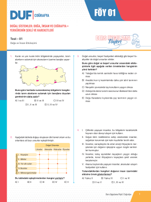 DOĞAL SİSTEMLER: DOĞA, İNSAN VE COĞRAFYA - Test 1 - Sayfa 1