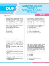 FELSEFENİN TEMEL KONULARI VE PROBLEMLERİ - I - DUF - FÖY 3 - Test 1