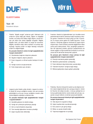 FELSEFEYİ TANIMA - Test 1 - Sayfa 1