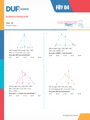 İKİZKENAR VE EŞKENAR ÜÇGEN - Test 1 - Sayfa 1