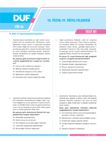 18. YÜZYIL - 19. YÜZYIL FELSEFESİ - Test 1 - Sayfa 1