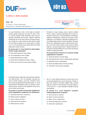 15. Yüzyıl - 17. Yüzyıl Felsefesi - Test 1