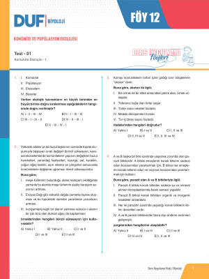 Komünite ve Popülasyon Ekolojisi - Test 1