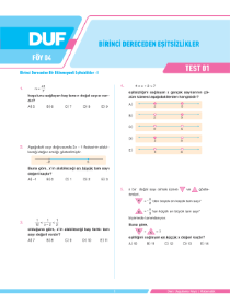 BİRİNCİ DERECEDEN EŞİTSİZLİKLER - DUF - 4 - Test 1