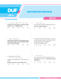İKİNCİ DERECEDEN DENKLEMLER - DUF - 14 - FÖY 14 - Test 1