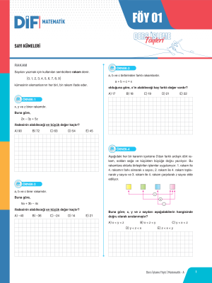 TYT MATEMATİK-A DİF - FÖY-1 - 2023 (TYT-AYT( YKS ) - TYT MATEMATİK) kitabı ile ilgili varsa videolarına, linklerine ulaşabilirsiniz...