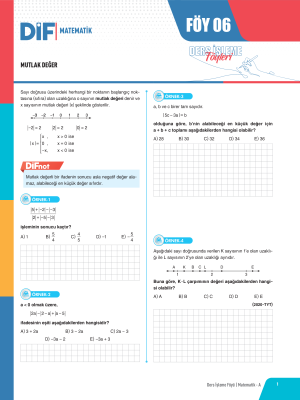 TYT MATEMATİK-A DİF - FÖY-6 - 2023 (TYT-AYT( YKS ) - TYT MATEMATİK) kitabı ile ilgili varsa videolarına, linklerine ulaşabilirsiniz...