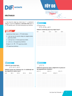 TYT MATEMATİK-A DİF - FÖY-8 - 2023 (TYT-AYT( YKS ) - TYT MATEMATİK) kitabı ile ilgili varsa videolarına, linklerine ulaşabilirsiniz...