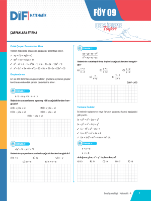 TYT MATEMATİK-A DİF - FÖY-9 - 2023