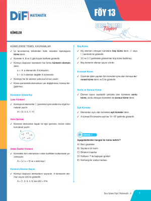 TYT MATEMATİK-A DİF - FÖY-13 - 2023 (TYT-AYT( YKS ) - TYT MATEMATİK) kitabı ile ilgili varsa videolarına, linklerine ulaşabilirsiniz...
