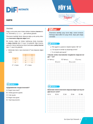 TYT MATEMATİK-A DİF - FÖY-14 - 2023 (TYT-AYT( YKS ) - TYT MATEMATİK) kitabı ile ilgili varsa videolarına, linklerine ulaşabilirsiniz...