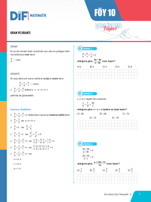 TYT MATEMATİK-B DİF - FÖY-10 - 2023 (TYT-AYT( YKS ) - TYT MATEMATİK) kitabı ile ilgili varsa videolarına, linklerine ulaşabilirsiniz...