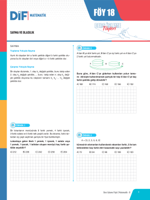 TYT MATEMATİK-B DİF - FÖY-18 - 2023 (TYT-AYT( YKS ) - TYT MATEMATİK) kitabı ile ilgili varsa videolarına, linklerine ulaşabilirsiniz...