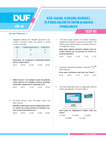 KÂR-ZARAR, KARIŞIM, HAREKET, İŞ PROBLEMLERİ VE RUTİN OLMAYAN PROBLEMLER - Test 1 - Sayfa 145