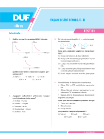 YAŞAM BİLİMİ BİYOLOJİ - II - Test 1 - Sayfa 1