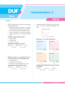 YAŞAM BİLİMİ BİYOLOJİ - III - Test 1 - Sayfa 1