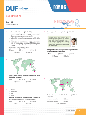 DOĞAL SİSTEMLER - VI - Test 1 - Sayfa 1