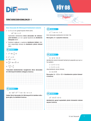 10. SINIF MATEMATİK DİF - FÖY-8 - 2023
