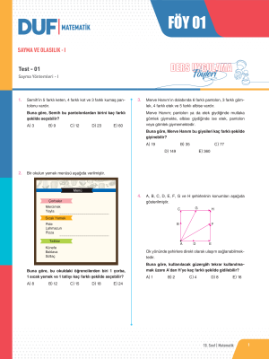 10. SINIF MATEMATİK DUF - FÖY-1 - 2023