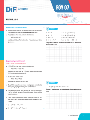 2024 - 10. SINIF MATEMATİK DİF - FÖY-7