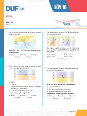 10. SINIF FİZİK DUF - FÖY-10 - 2023