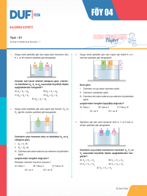 KALDIRMA KUVVETİ - Test 1 - Sayfa 1