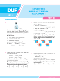 KİMYANIN TEMEL KANUNLARI VE KİMYASAL HESAPLAMALAR - I - Test 1 - Sayfa 1