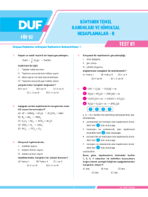 KİMYANIN TEMEL KANUNLARI VE KİMYASAL HESAPLAMALAR - II - Test 1 - Sayfa 1