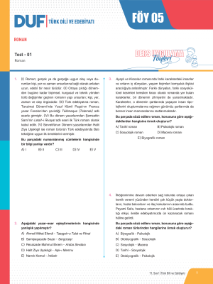 11. SINIF TÜRK DİLİ VE EDEBİYATI DUF - FÖY-5 - 2023 (11.SINIF - TÜRK DİLİ VE EDEBİYATI) kitabı ile ilgili varsa videolarına, linklerine ulaşabilirsiniz...