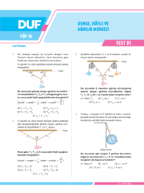 DENGE, KÜTLE VE AĞIRLIK MERKEZİ - Test 1 - Sayfa 1