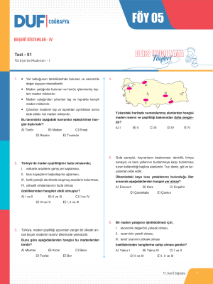 11. SINIF COĞRAFYA DUF - FÖY-5 - 2023 (11.SINIF - COĞRAFYA) kitabı ile ilgili varsa videolarına, linklerine ulaşabilirsiniz...