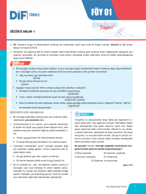 TYT TÜRKÇE DİF - FÖY-1 - 2023